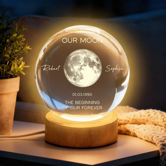 Moon The Beginning Of Our Forever - Personalized Wooden Base Crystal Lamp