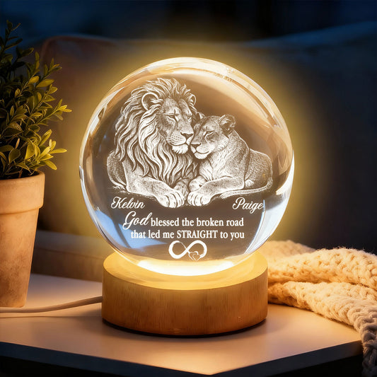 God Blessed The Broken Road That Led Me Straight To You - Personalized Wooden Base Crystal Lamp