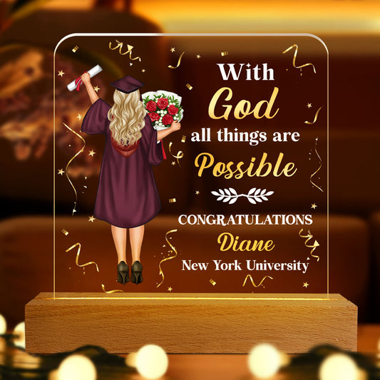With God All Things Are Possible - Personalized Acrylic Plaque Night Light