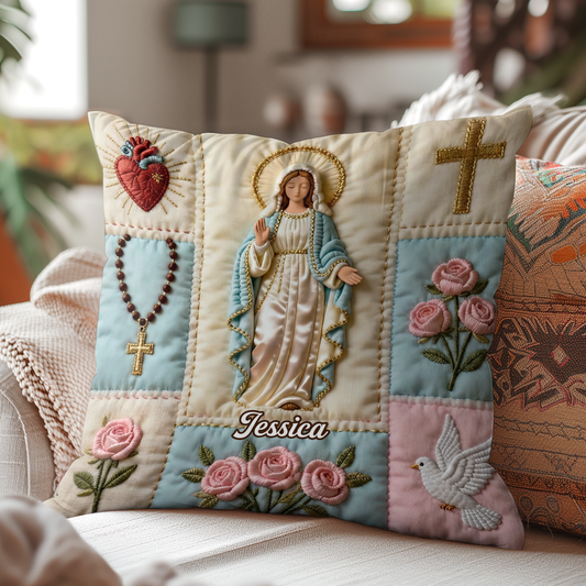 Our Lady - Personalized Crystal Velvet Pillow