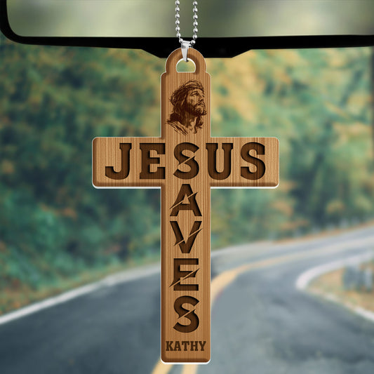 Jesus Saves Me - Personalized 1-Side Car Acrylic Hanging Ornament