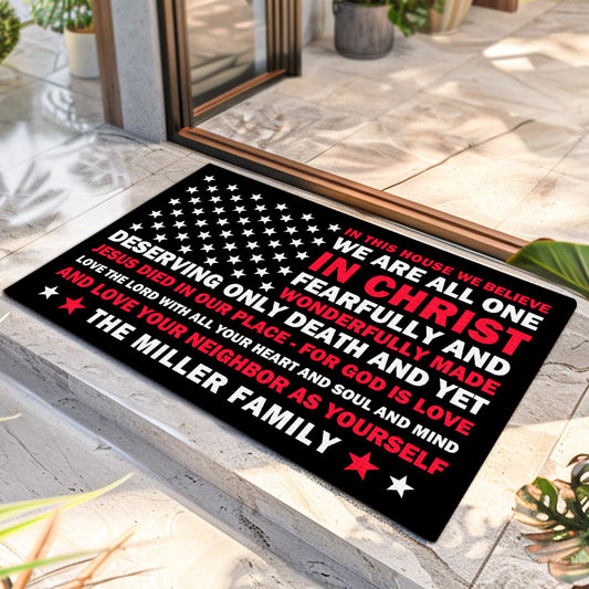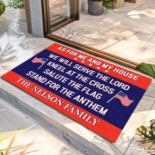 Kneel At The Cross, Salute The Flag - Personalized Doormat