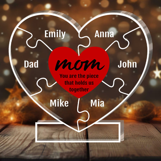 Mom You Are The Piece That Hold Us Together - Personalized Wooden Base Crystal Lamp