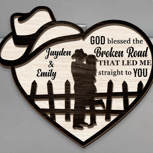 God Blessed The Broken Road Couple - Personalized Car Visor Clip