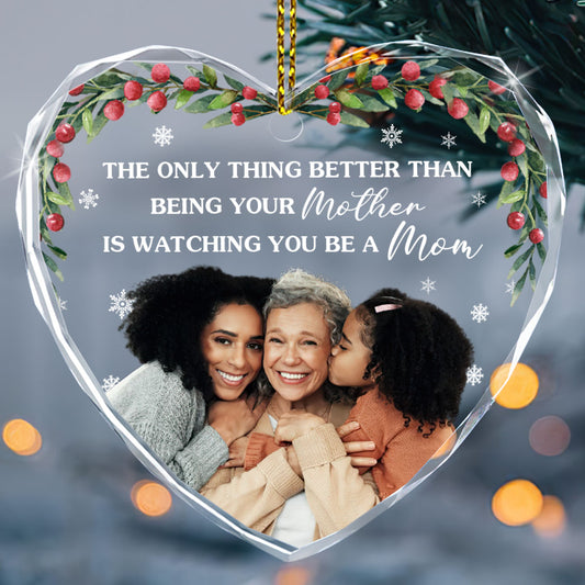 Watching You Be A Mom - Personalized Heart Shaped Glass Ornament FCHGOLEHA2842L