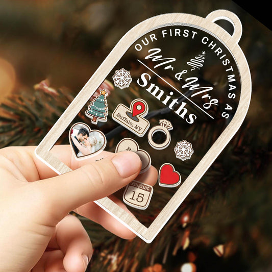 Our First Christmas As Mr and Mrs - Personalized 3 Layered Christmas Shaker Ornament
