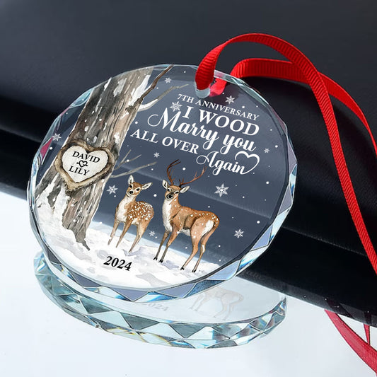 I Wood Marry You All Over Again 5th Anniversary - Personalized Custom Glass Ornament