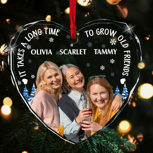 It Takes A Long Time To Grow An Old Friend - Personalized Heart Shaped Glass Ornament FCHGOLEHA2834M