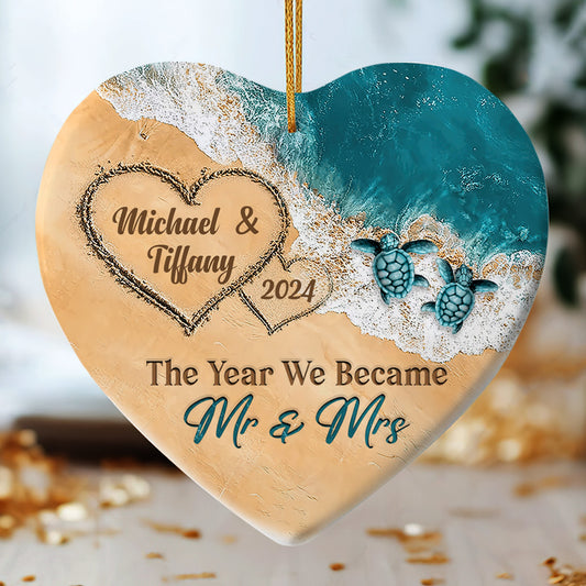 The Year We Became Mr & Mrs - Personalized Heart Shaped Ceramic Ornament FCHCOLETN2650TA