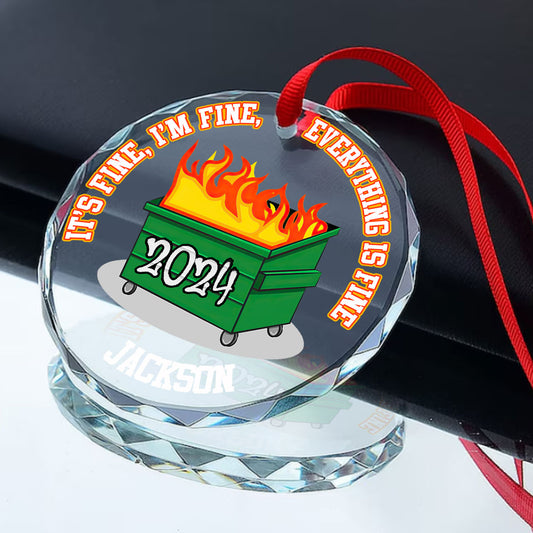 Funny Dumpster Fire Everything Is Fine - Personalized Custom Glass Ornament FCURGOPLEHA2570T