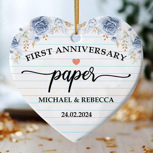First Anniversary Paper Wedding - Personalized Heart Shaped Ceramic Ornament FCHCOLETN2592M
