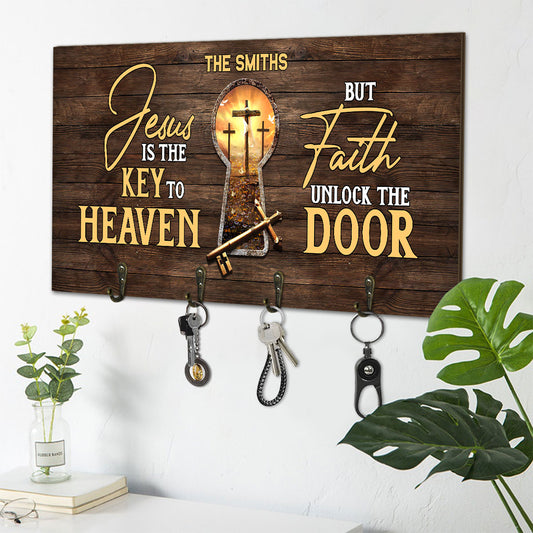 Jesus Is The Key To Heaven But Faith Unlock The Door - Personalized Key Holder FCUWKHCSLEM1623TA
