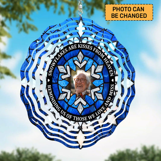 Custom Photo Snowflakes Are Kisses From Heaven Memorial - Personalized Wind Spinners FCWISPLEH1519TA
