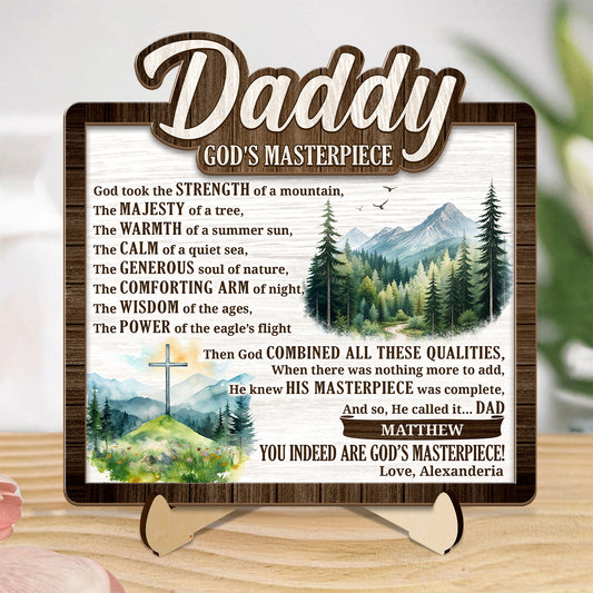Dad God's Masterpiece - Personalized 2-Layered Wooden Plaque
