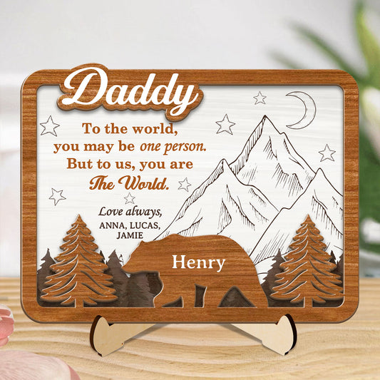 Dad You're Our World - Personalized 2-Layered Wooden Plaque