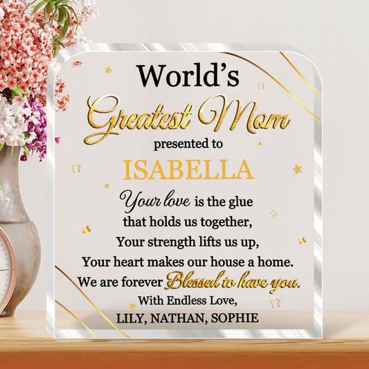 World’s Greatest Mom - Personalized Custom Shaped Squared Acrylic Plaque