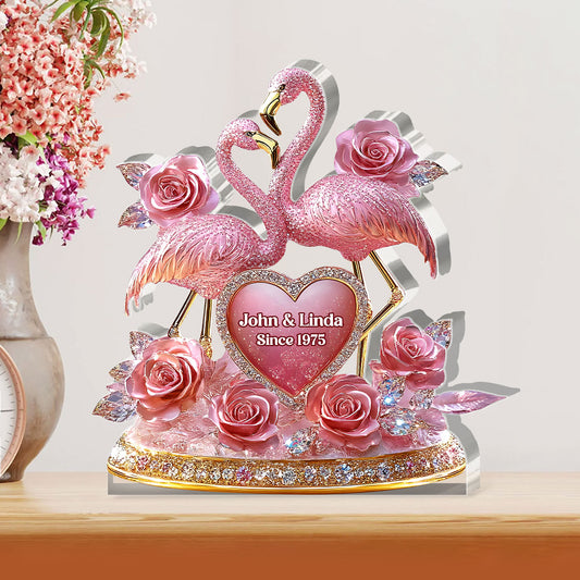 Together In Pink Romantic Flamingo Display - Personalized Custom Shaped Squared Acrylic Plaque