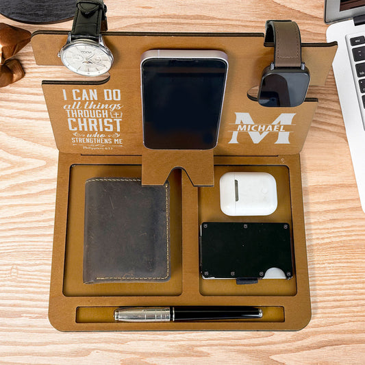 I Can Do All Things Through Christ - Personalized Wooden Docking Station
