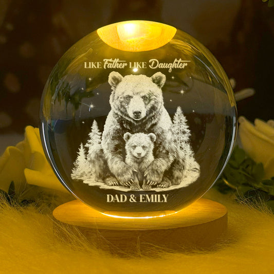 Papa Bear - Personalized Wooden Base Crystal Lamp