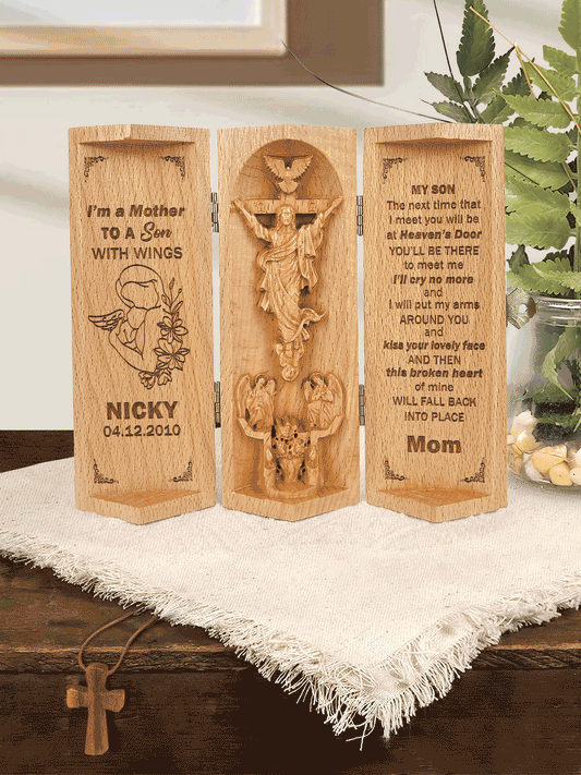 My Son In Heaven - Personalized Wooden Cylinder Sculpture