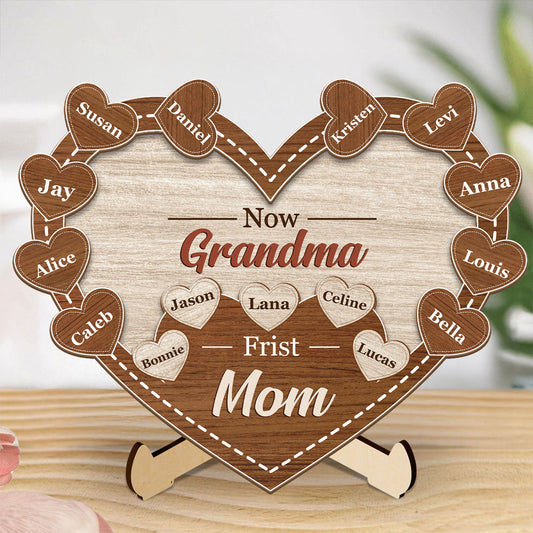 First Mom Now Grandma Sweethearts - Personalized 2-Layered Wooden Plaque