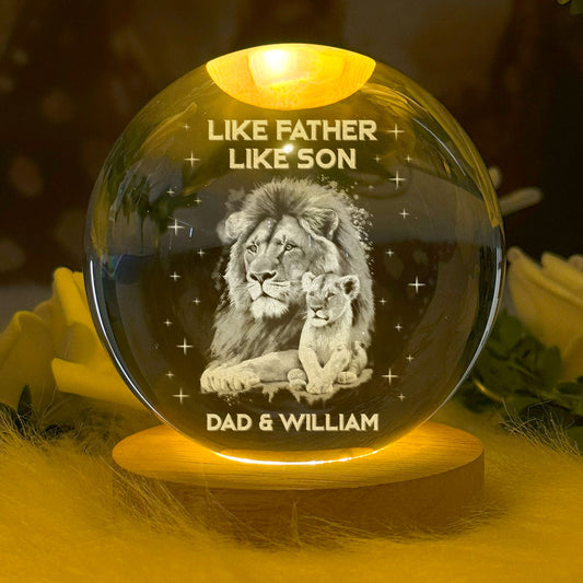 Papa Lion - Personalized Wooden Base Crystal Lamp