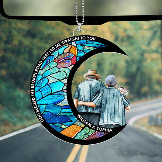God Blessed The Broken Road That Led Me Straight To You - Personalized Car Acrylic Hanging Ornament