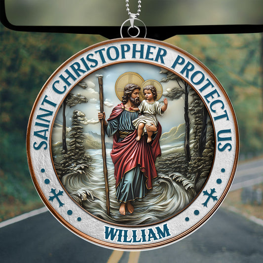 Saint Christopher Protect Us - Personalized Car Acrylic Hanging Ornament