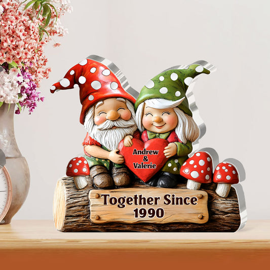 Forever Together Gnome Couple Statue - Personalized Custom Shaped Squared Acrylic Plaque