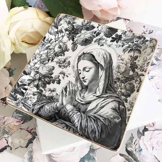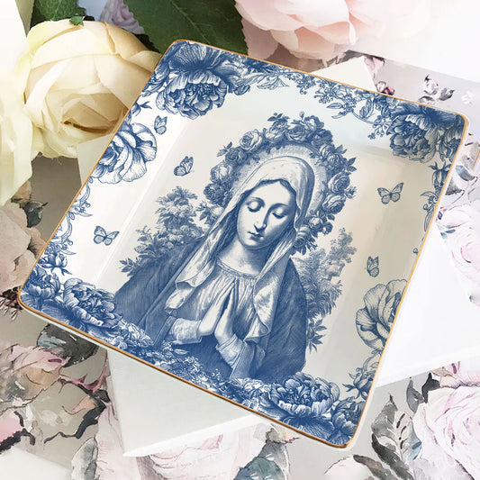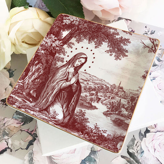 Kneeling Virgin Mary In Devotion - Personalized Ceramic Ring Dish Square