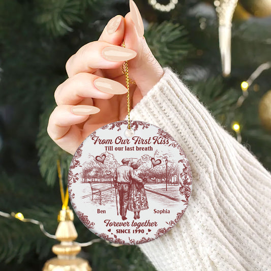 Timeless Love - Personalized Round Shaped Ceramic Ornament