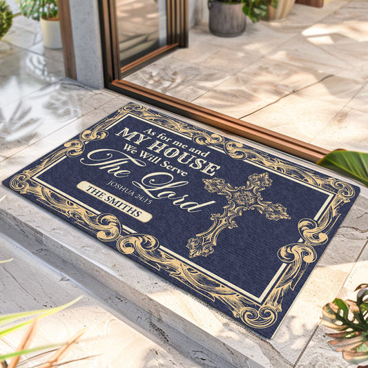 As For Me And My House We Will Serve The Lord - Personalized Doormat