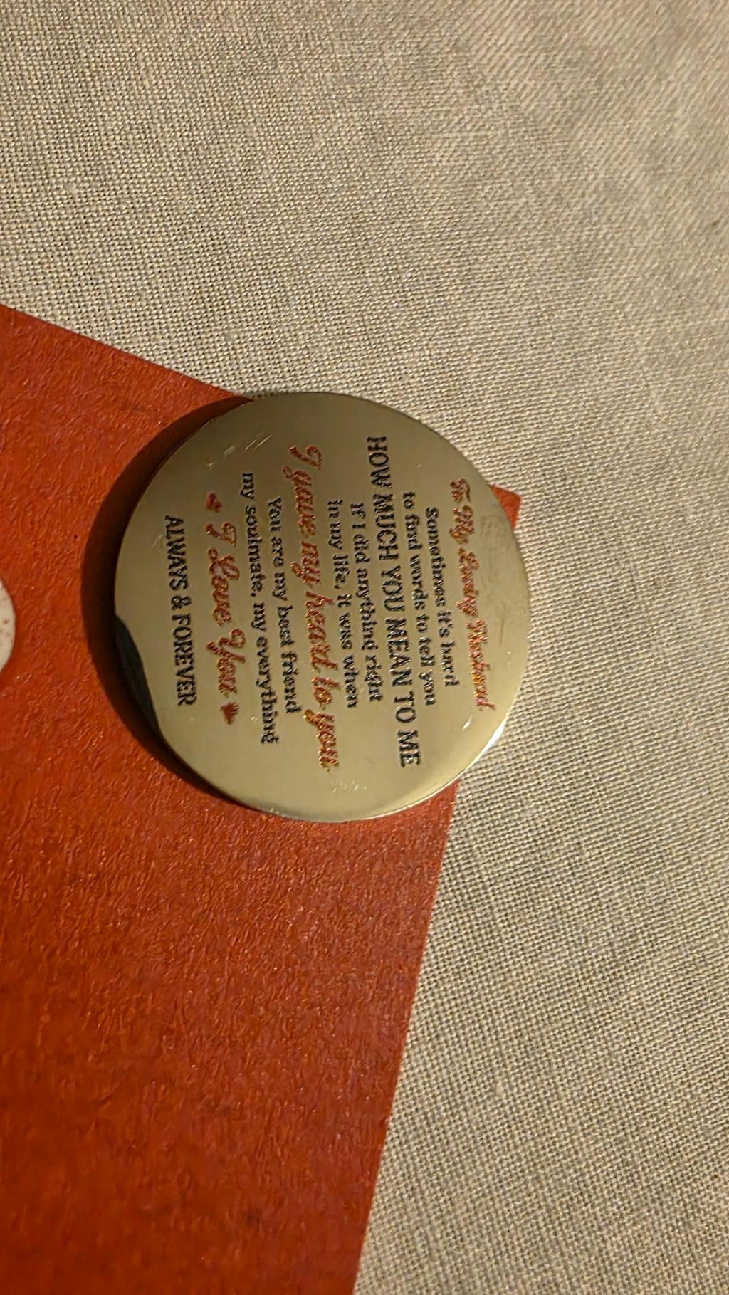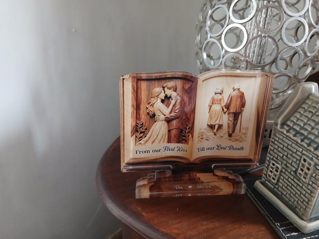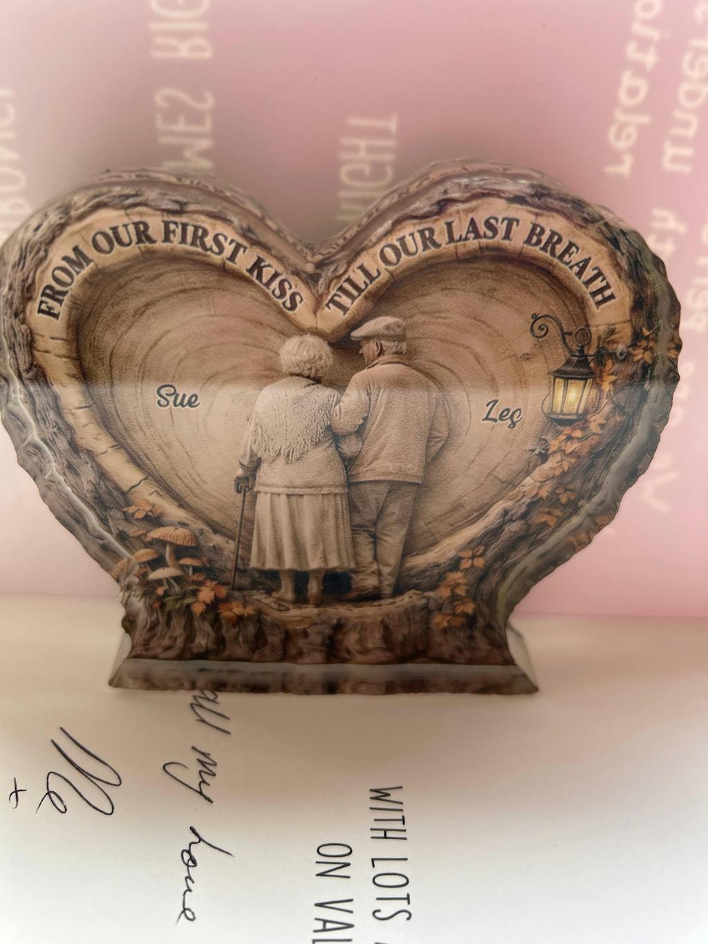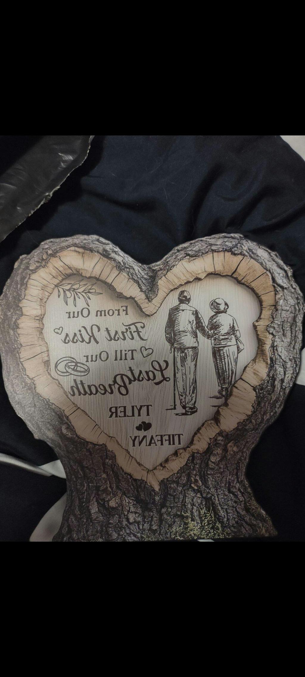 My neighbors 46 year old wife died and this was his first Valentines Day without her. I wanted to give him something he could hold on to when he is having a moment. It took awhile to get here, but I was so grateful it showed up on Valentines Day. Whew. He said, oh wow, our names are on it. It made him smile. Even though the print was small, it brought joy to his heart. The case for it was nice.