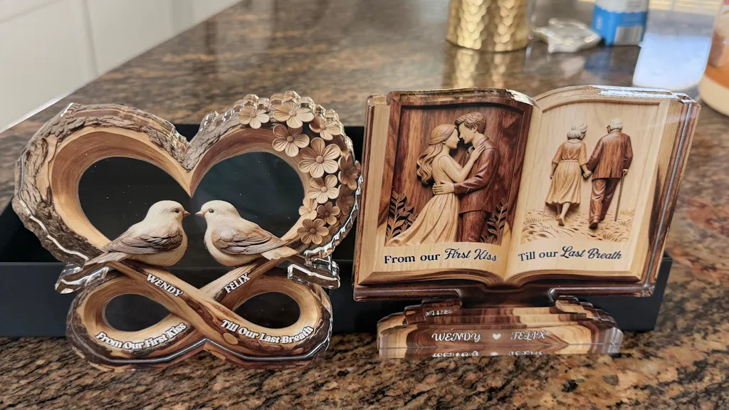 So happy to have found your FB page, since our wedding anniversary is coming soon; I didn’t have good ideas what to gift to my husband, and today April 1, 2026 around 12:30pm I received my orden and I was so impressed and joyful of how beautiful and detailed it was made. Size is perfect. I ordered Medium, color, names and engravings. Thank you so much and I will definitely order soon again for birthdays or just because. God bless you.
