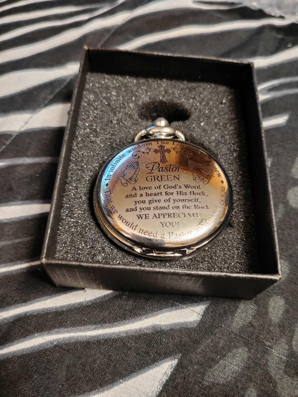 Bought this for my grandson. Great quality and even better sentiment. He loved the message and the vintage look. This watch means a lot to both of us. Something he can always remember me by.