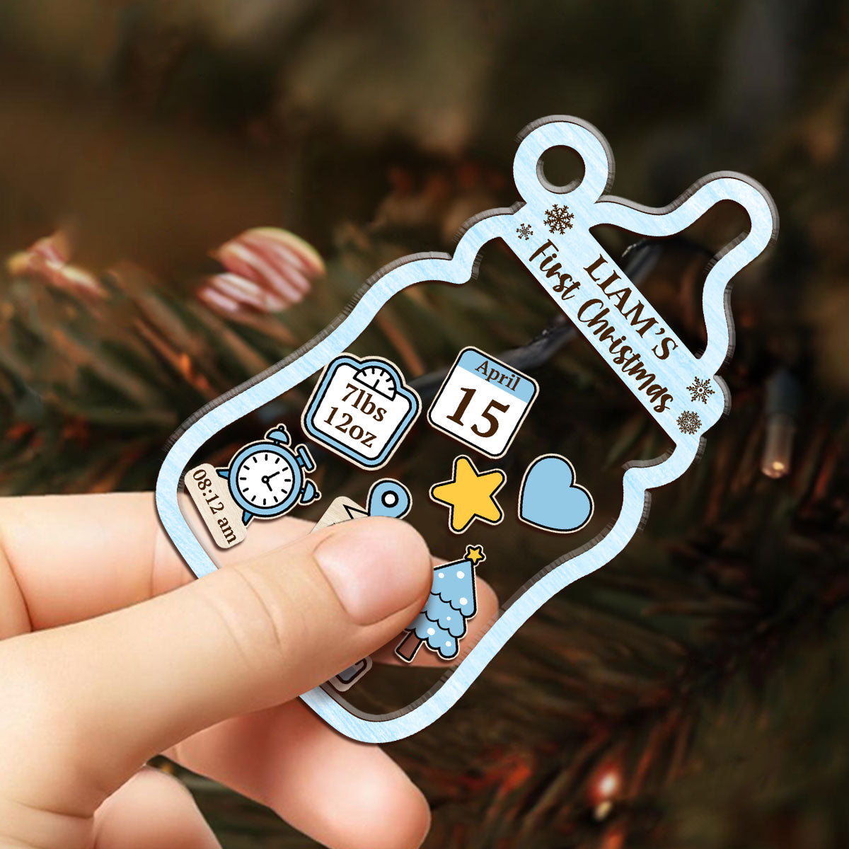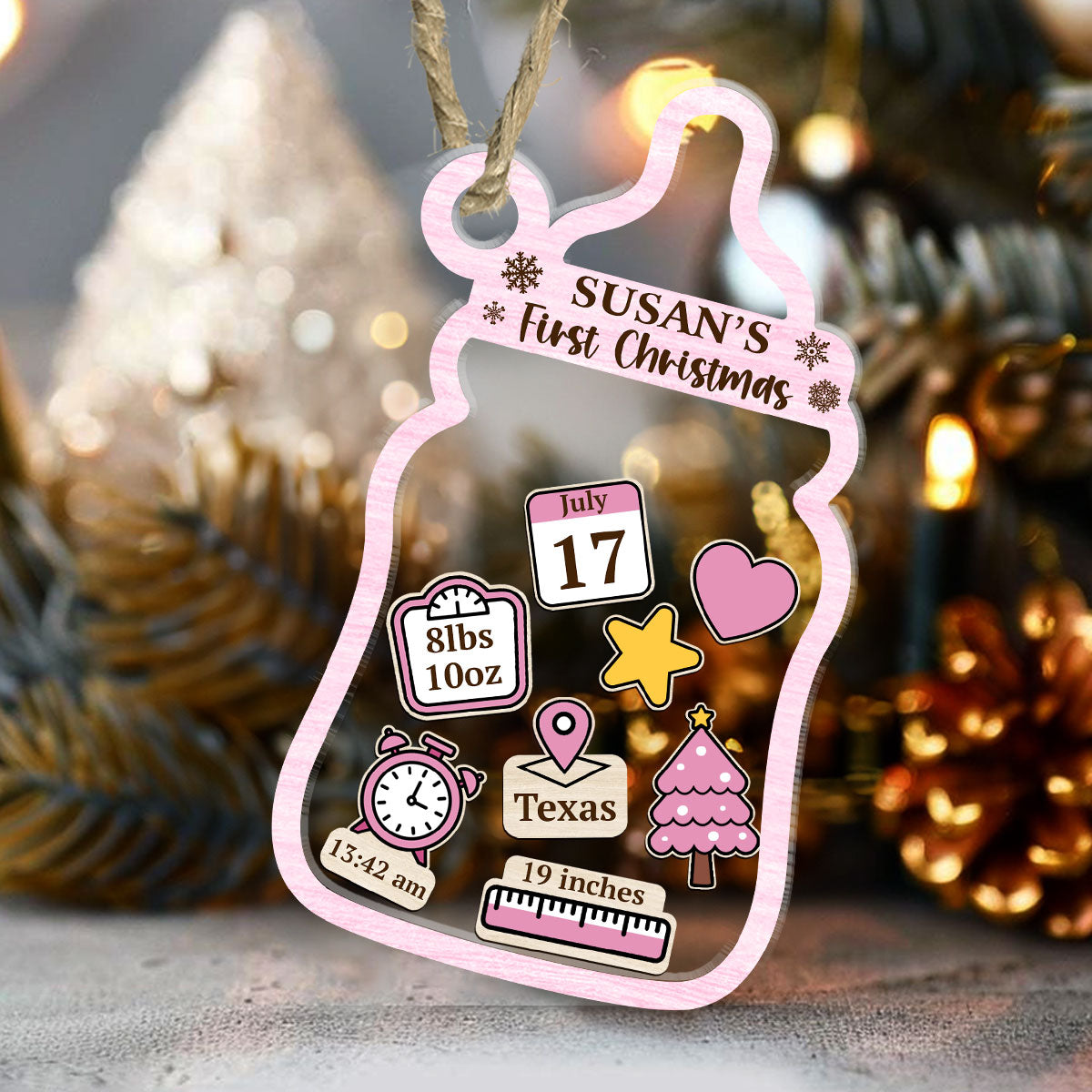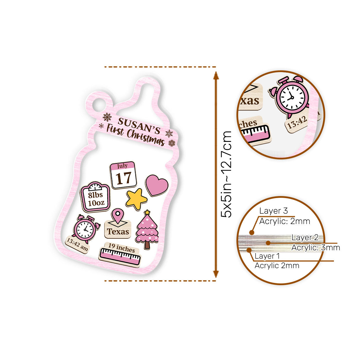 Baby's First Christmas Baby Bottle - Personalized 3 Layered Christmas Shaker Ornament FCCSOLEHA2469L