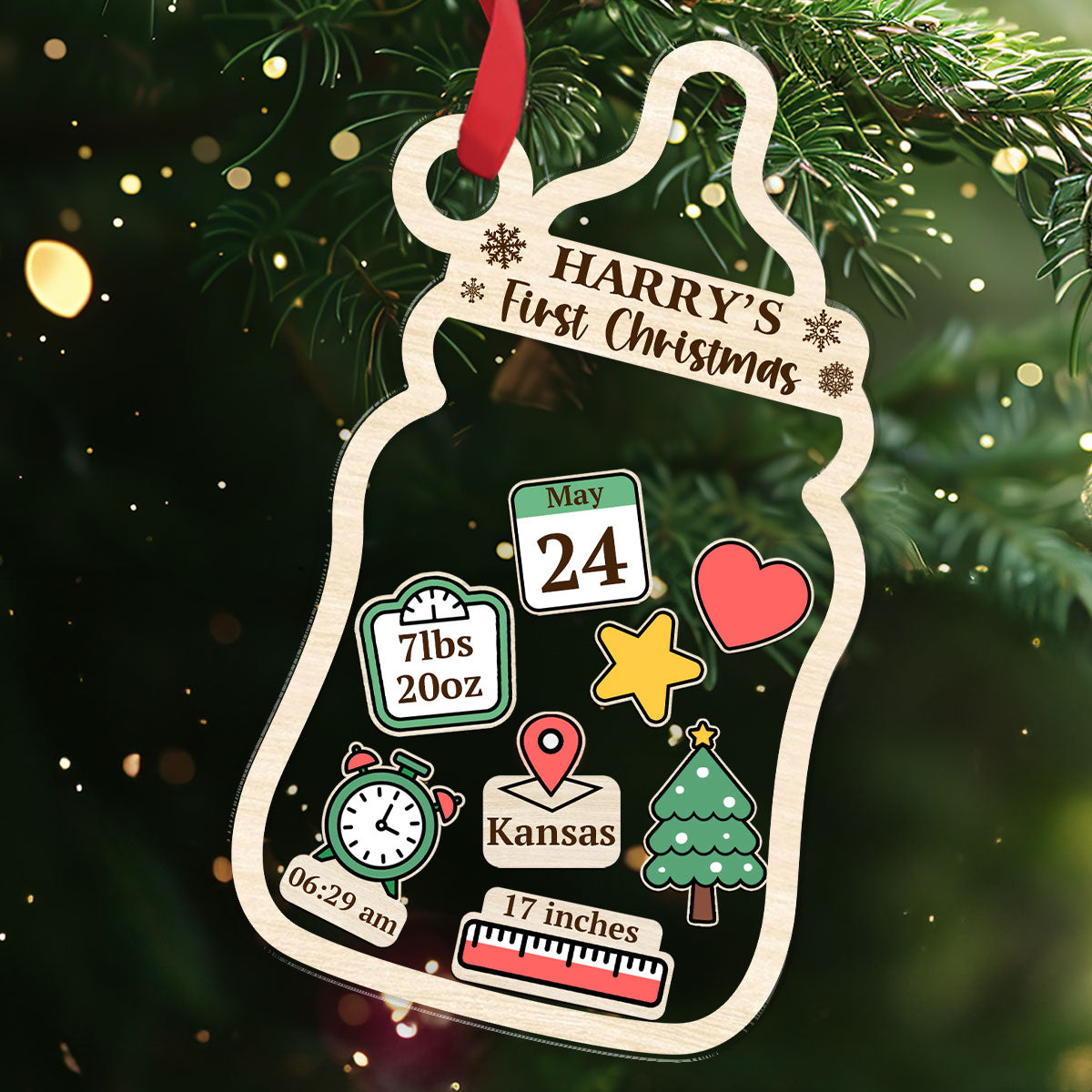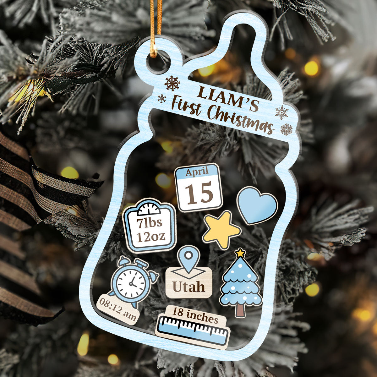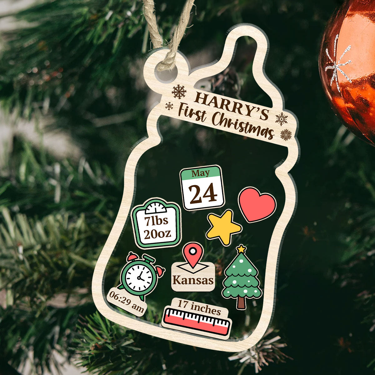 Baby's First Christmas Baby Bottle - Personalized 3 Layered Christmas Shaker Ornament FCCSOLEHA2469L