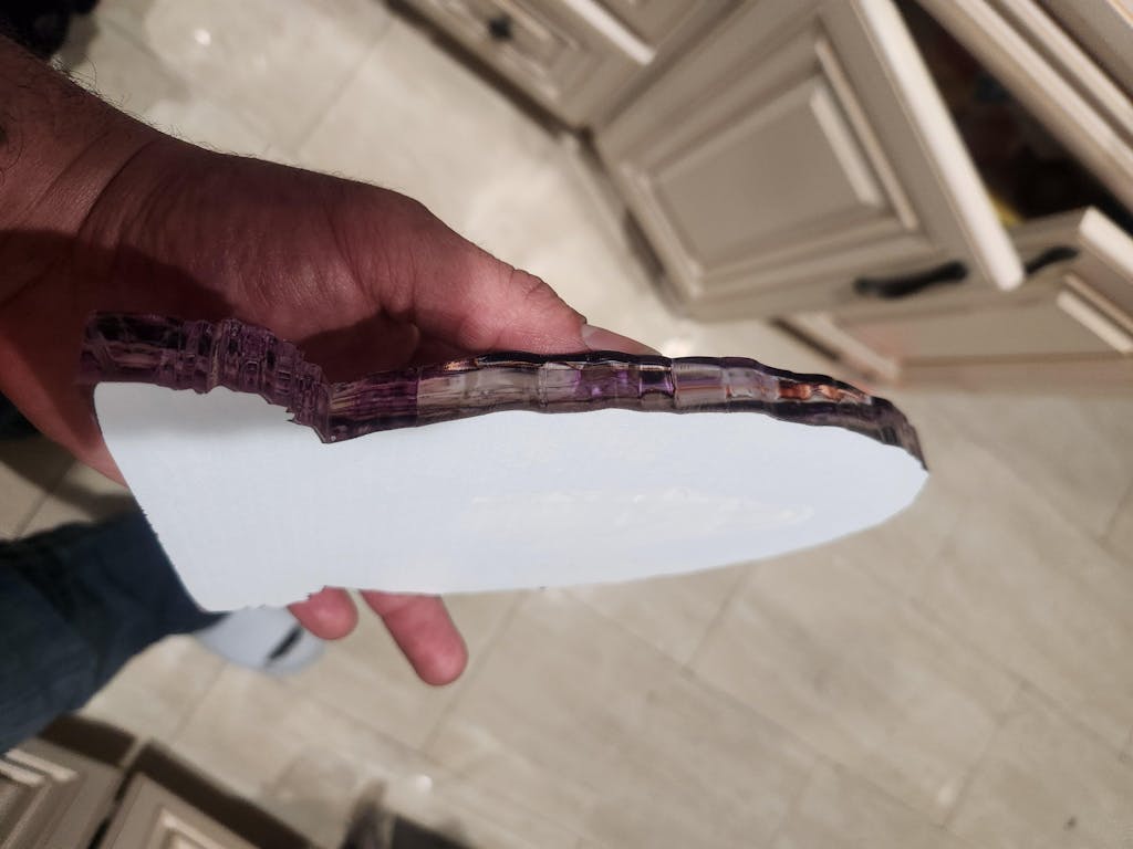 Acrylic looks like it was cut with a hand saw, very jagged with sharp pointy edges in some areas that can stab your hand.