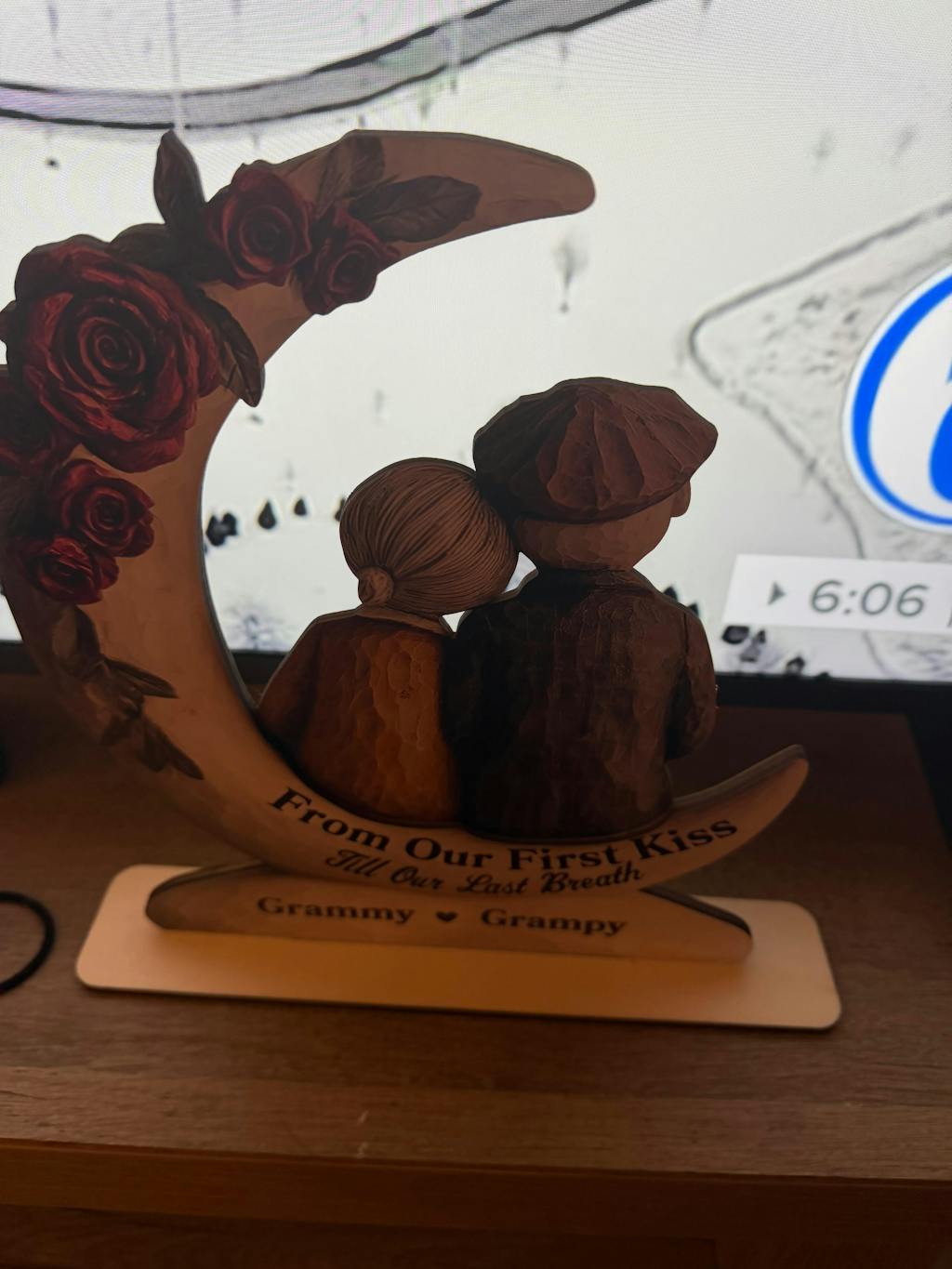 The picture is just a sticker put on the back and is torn on edges. I ordered Jan 14, order said delivery by Feb 2, received 2 weeks late Feb 18, after Valentines Day. Will not ever buy here again. Beyond poor quality.
