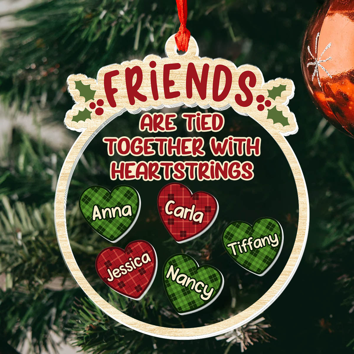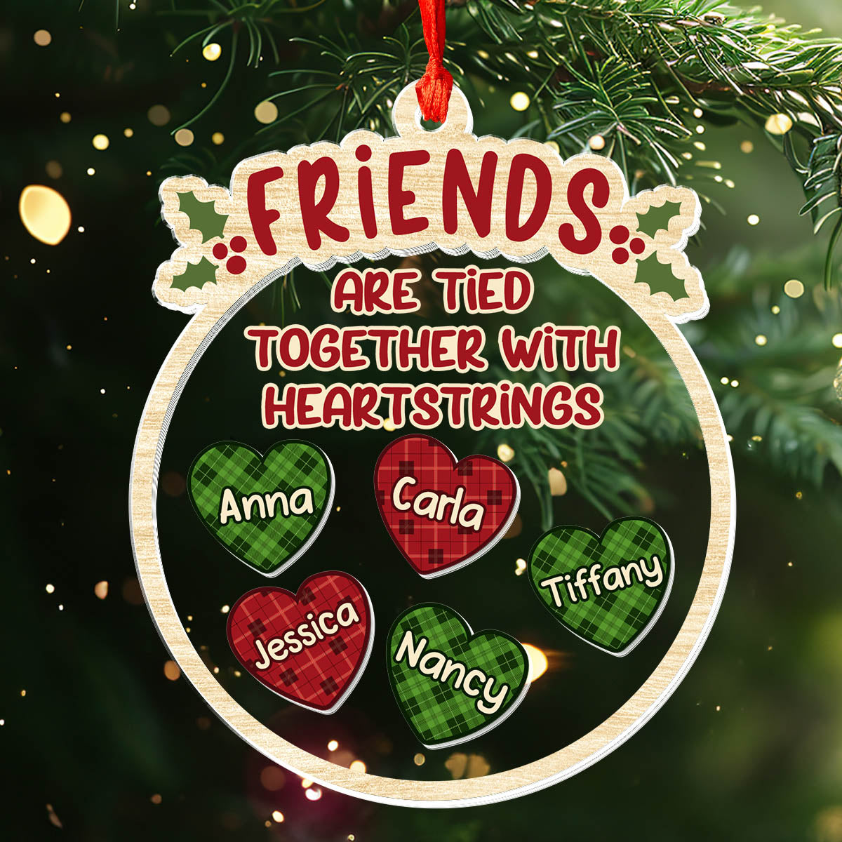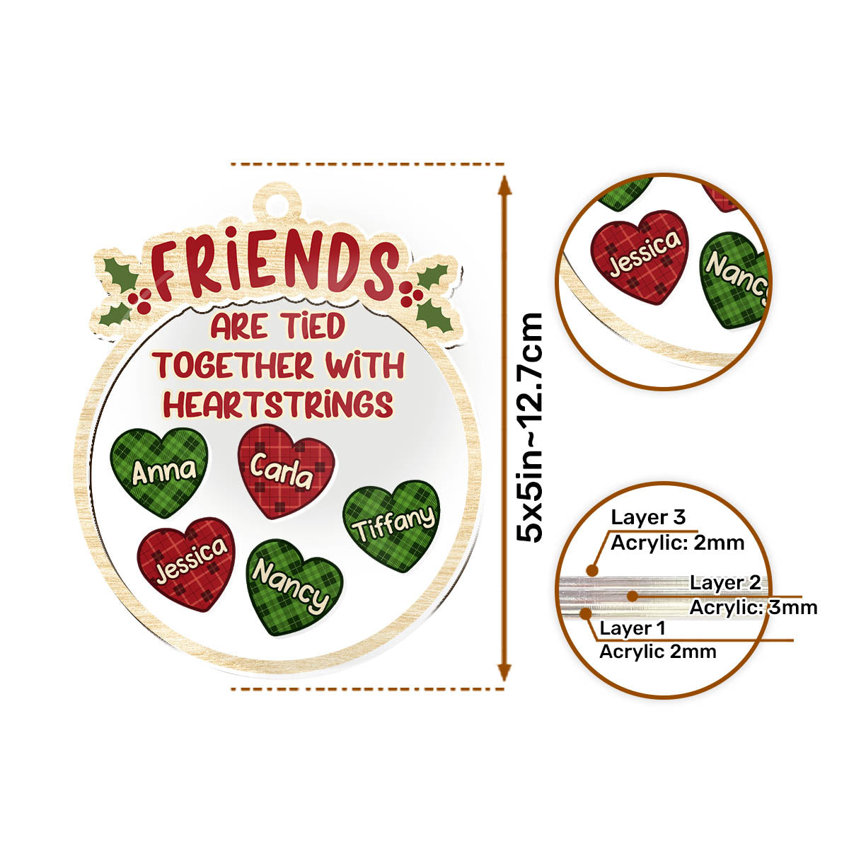 Besties Are Tied Together With Heartstrings - Personalized 3 Layered Christmas Shaker Ornament