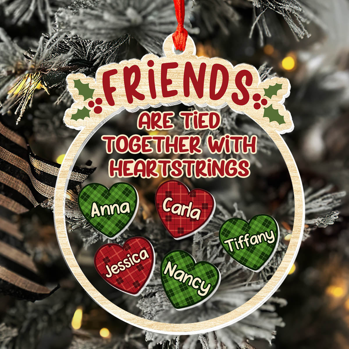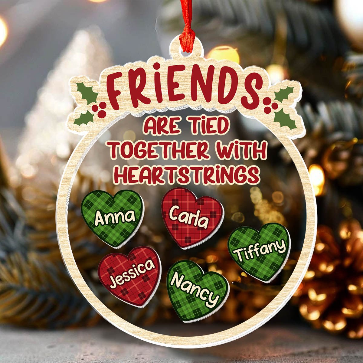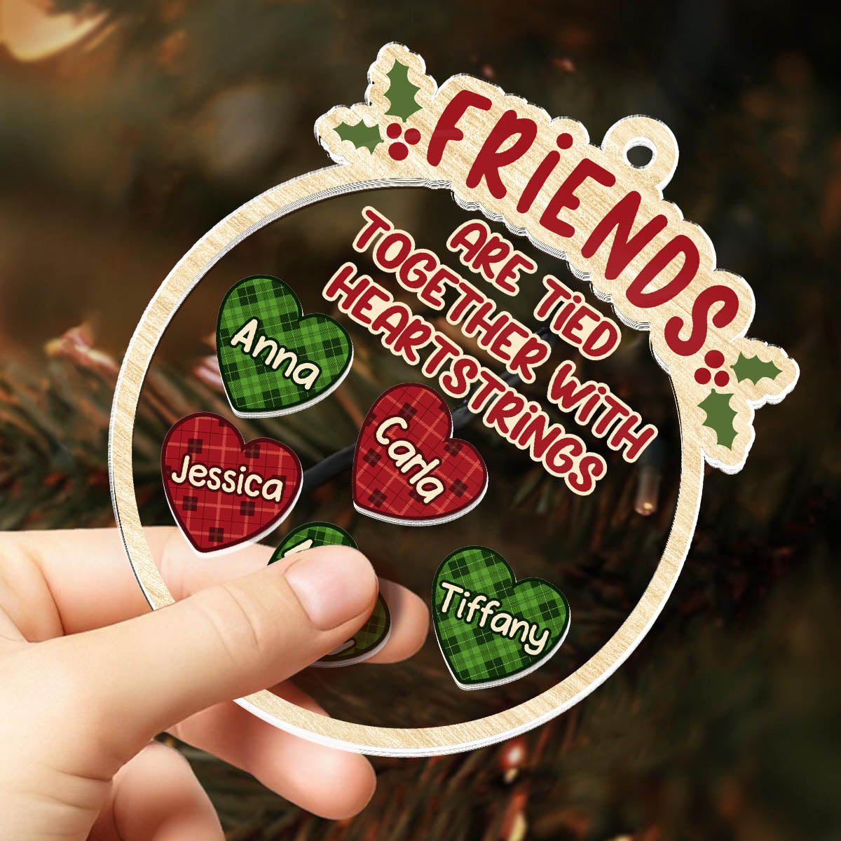 Besties Are Tied Together With Heartstrings - Personalized 3 Layered Christmas Shaker Ornament
