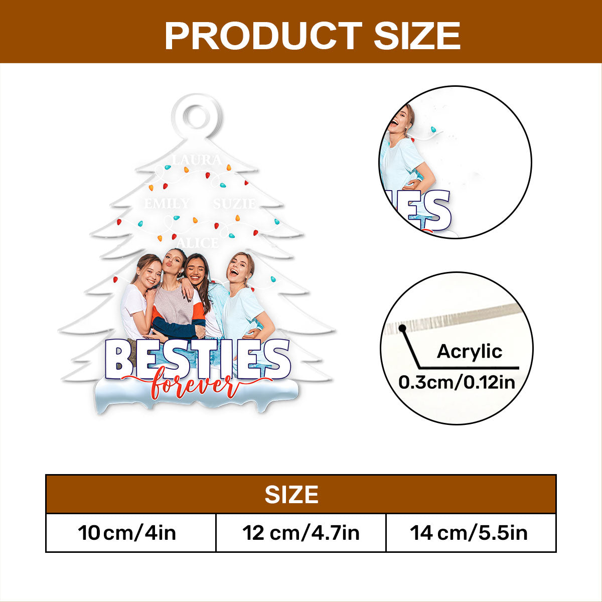 Besties Forever Christmas Tree - Personalized 1-Side Acrylic Ornament FCACOLEHA2779M