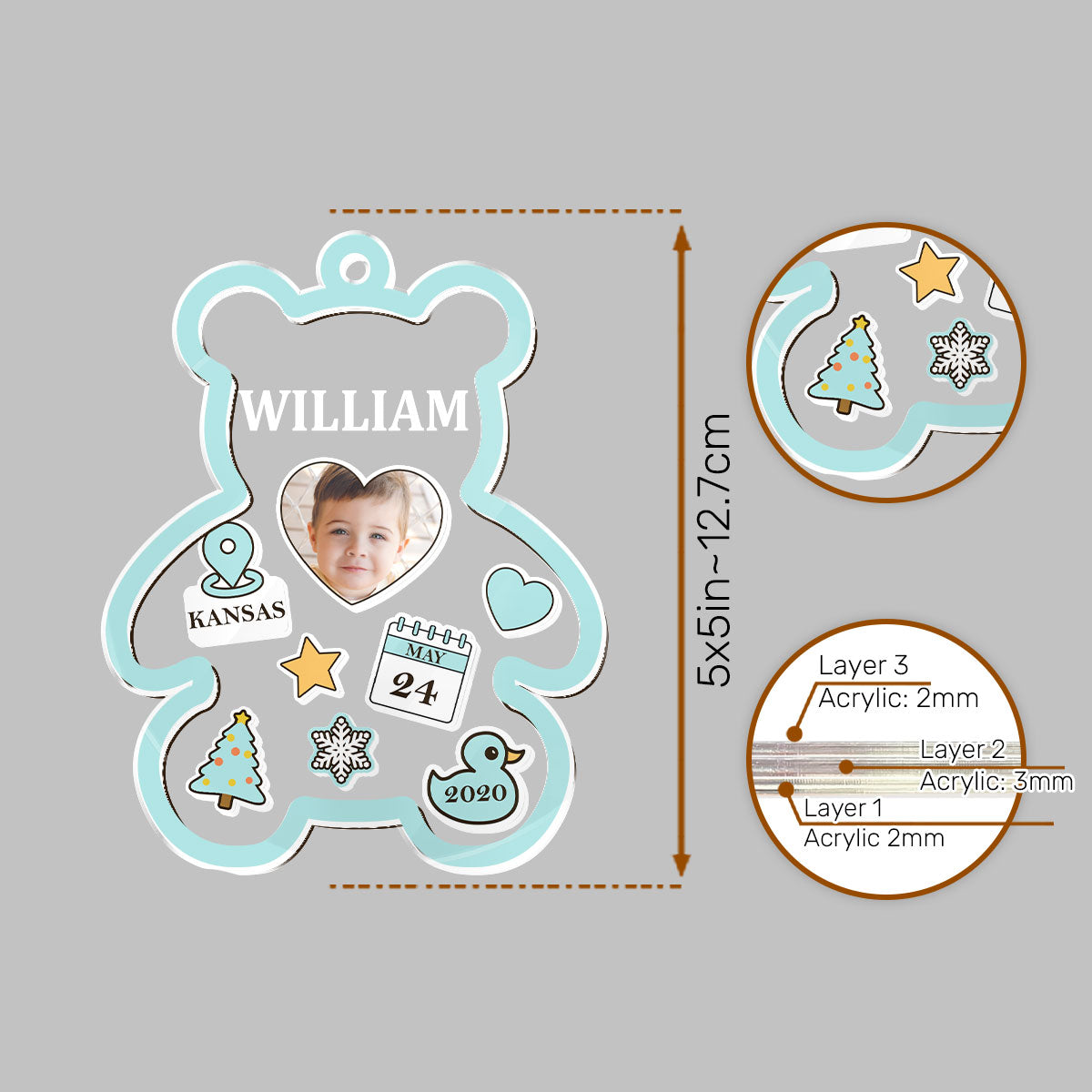 Cute Bear - Personalized 3 Layered Christmas Shaker Ornament