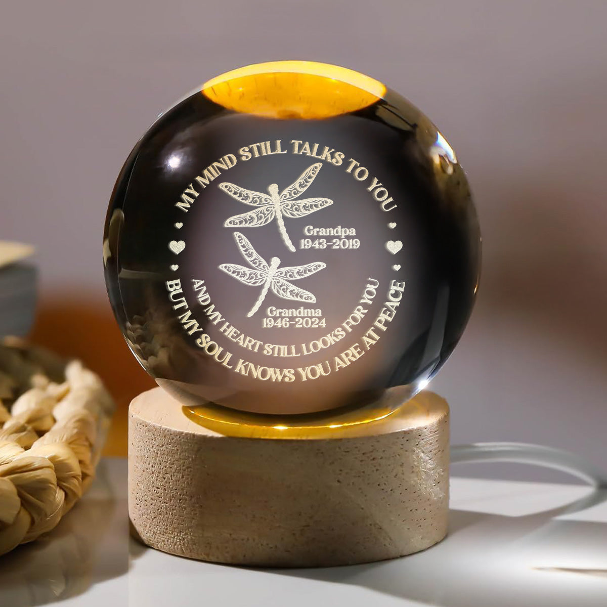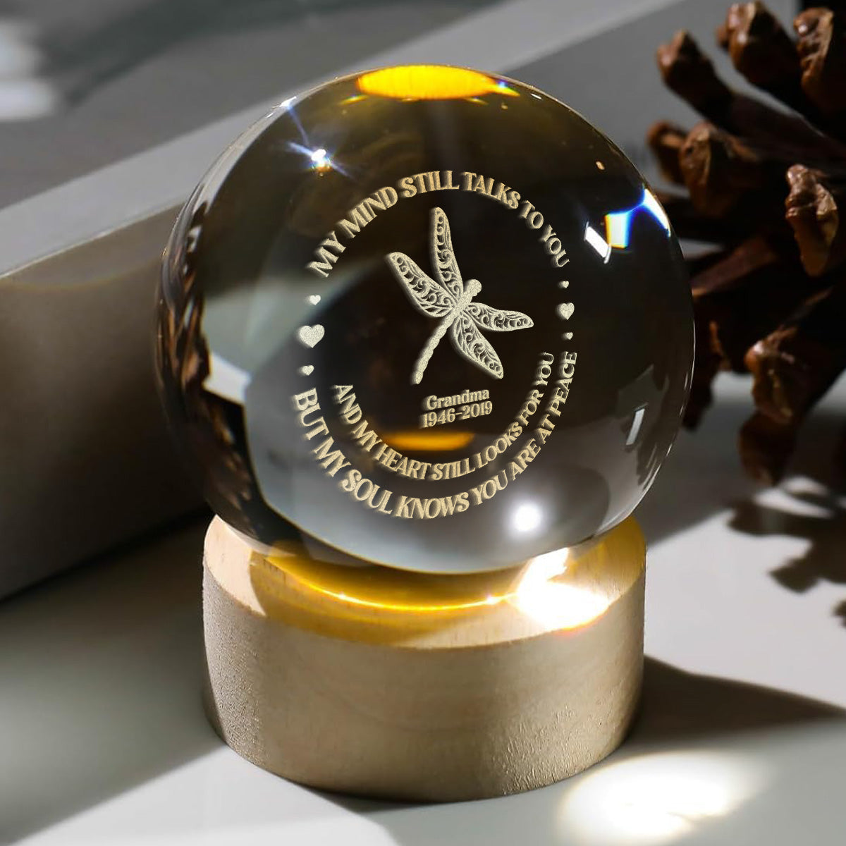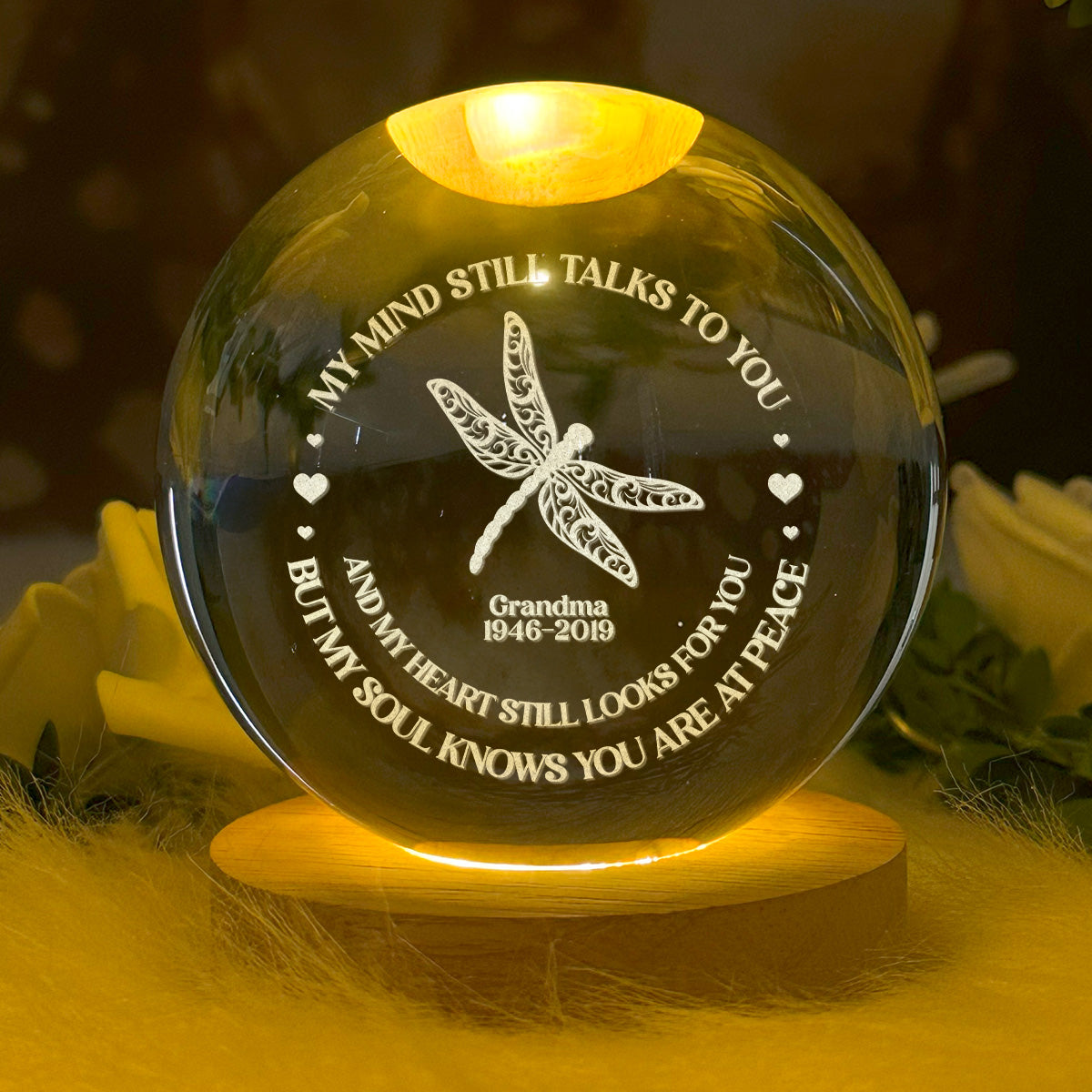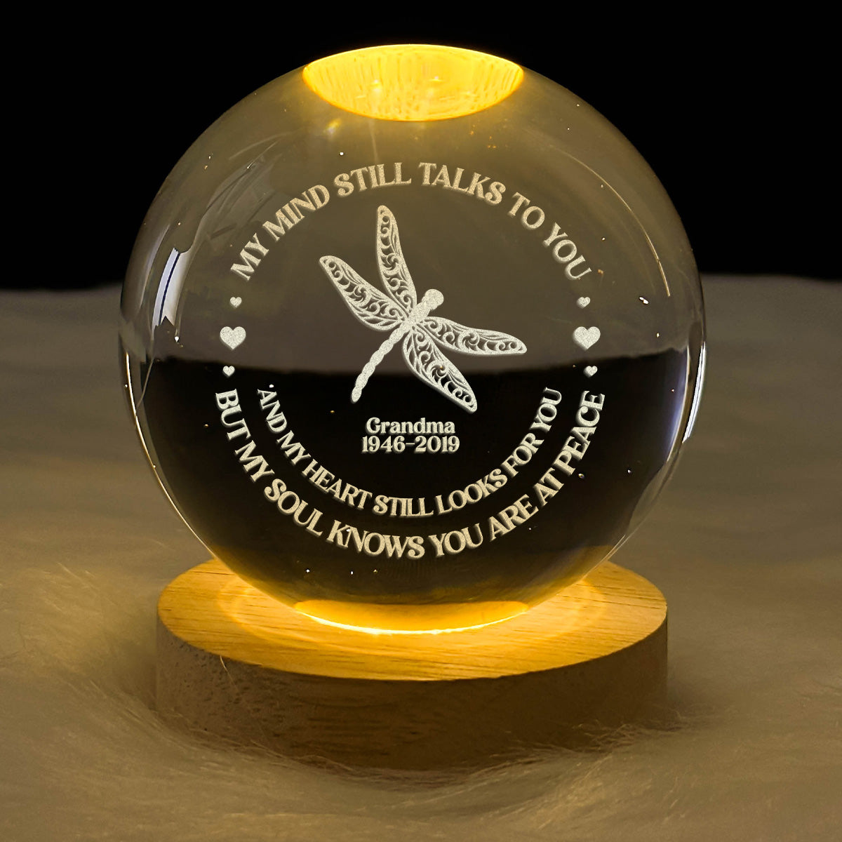 Dragonfly My Mind My Heart My Soul - Personalized Wooden Base Crystal Lamp