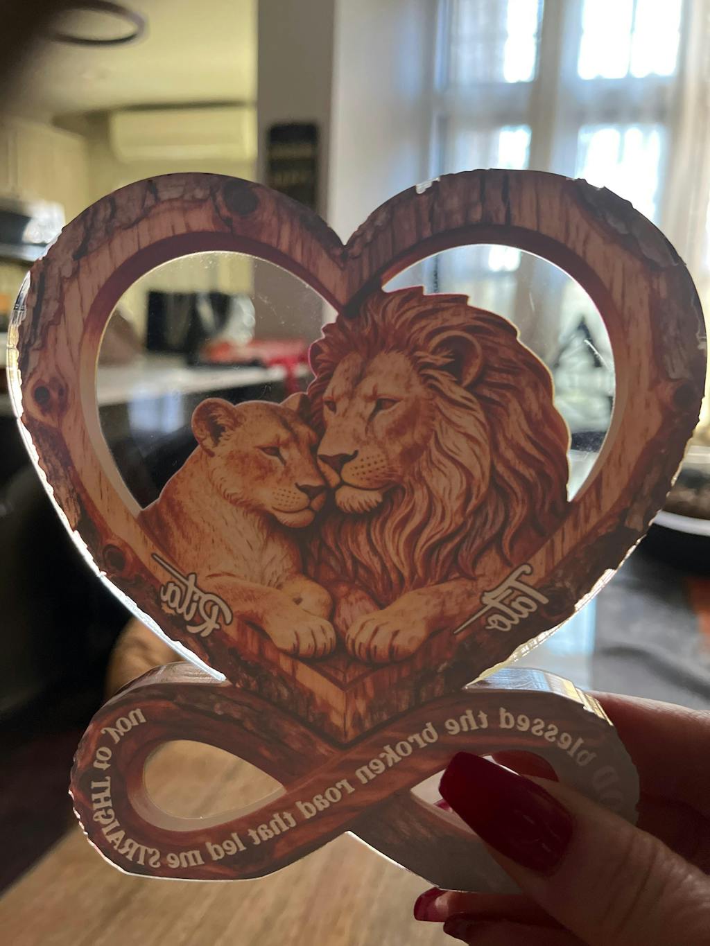 This item looked like it was made by a five year old kid . Plastic jagged junk . Something that you can by in a third world country . It’s a piece of plexiglass cut jaggedly with the most dullest glued on picture of Wood behind it . Very disappointed, poor quality. From China. As always !! I recommend you not to buy it. You will be disappointed.