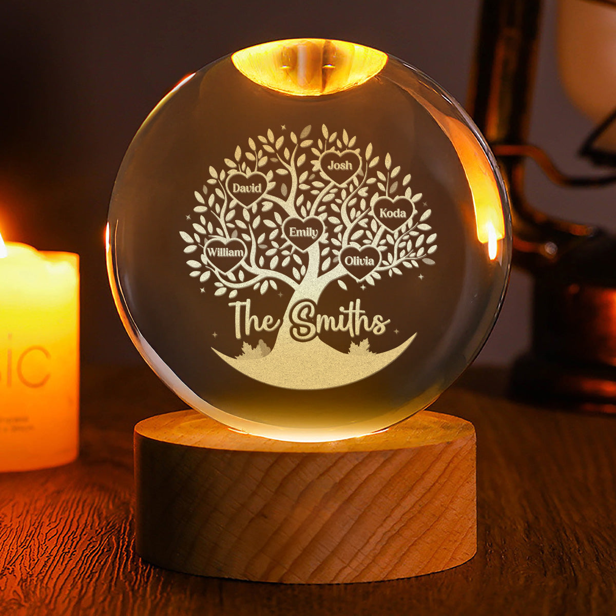 Family Tree - Personalized Wooden Base Crystal Lamp