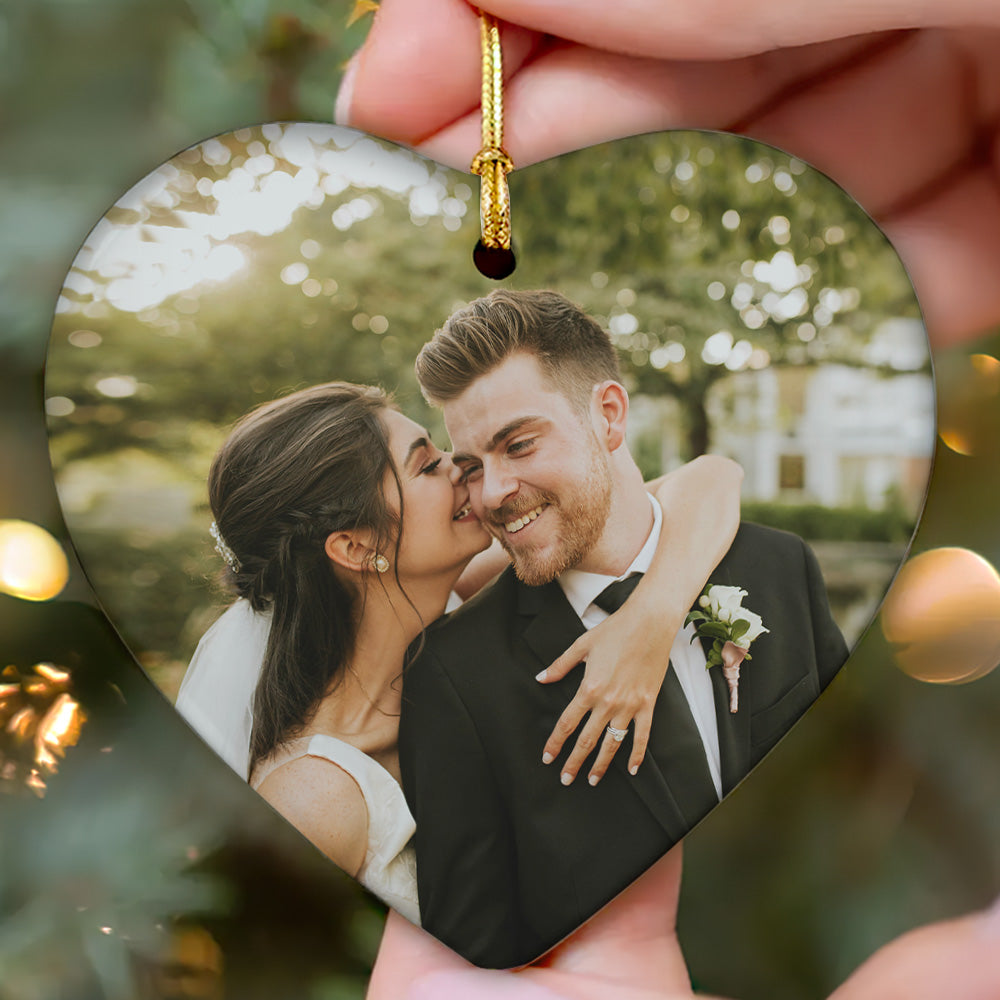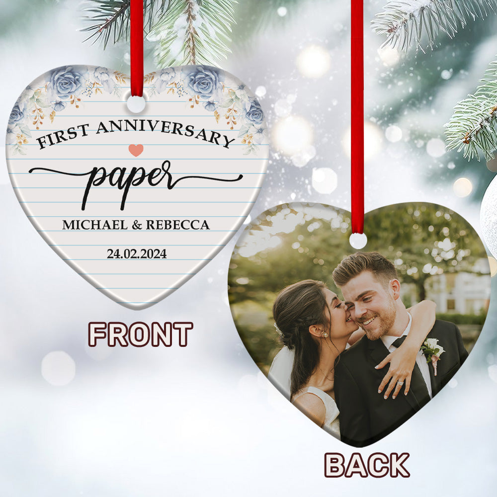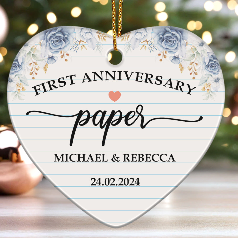 First Anniversary Paper Wedding - Personalized Heart Shaped Ceramic Ornament FCHCOLETN2592M