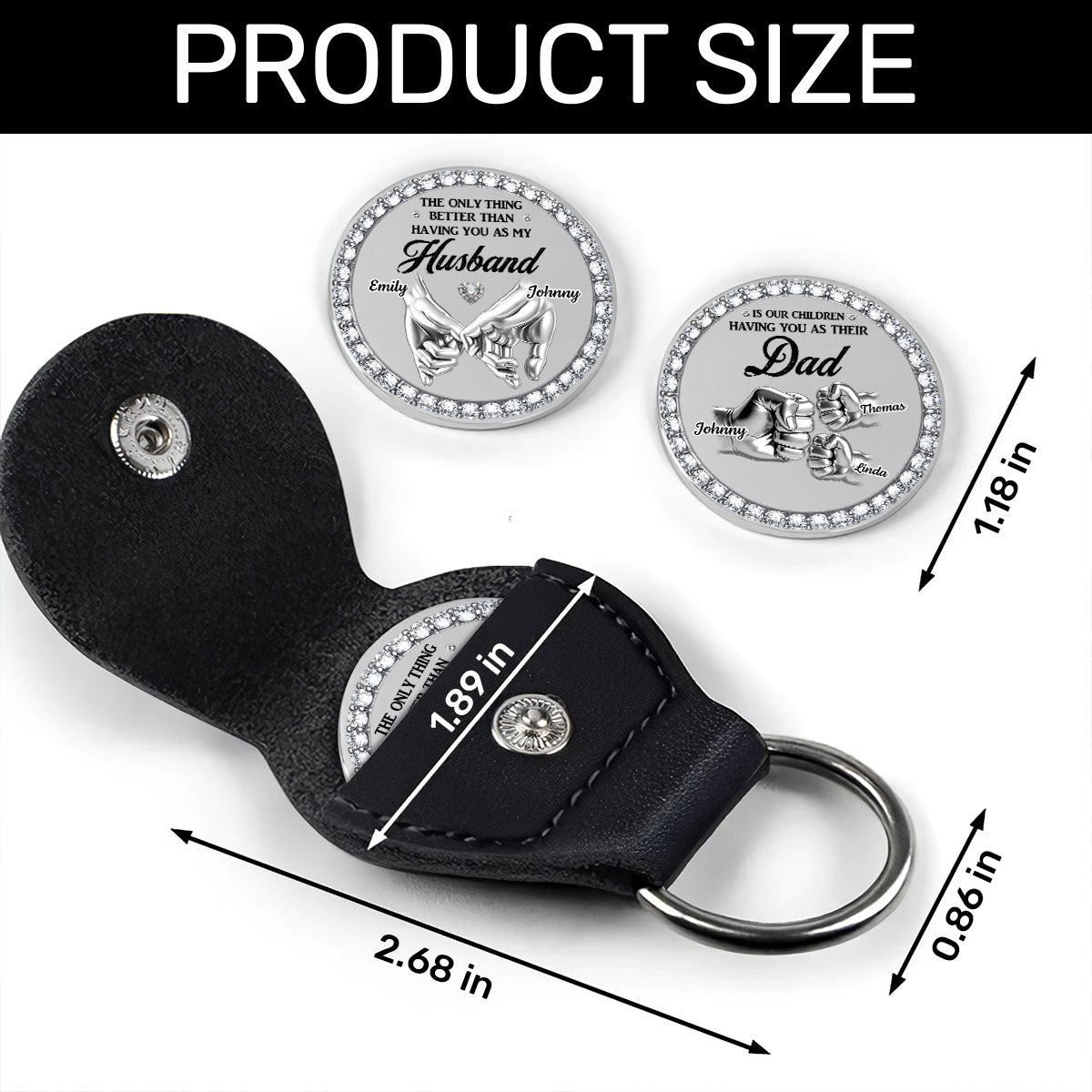 - Packaging: A stainless steel token and a PU leather pocket included.