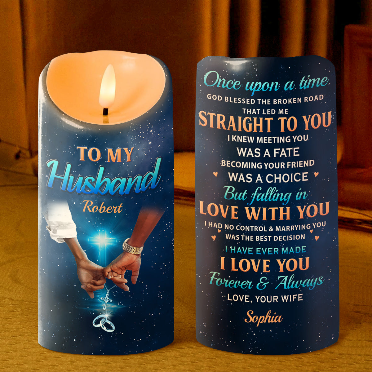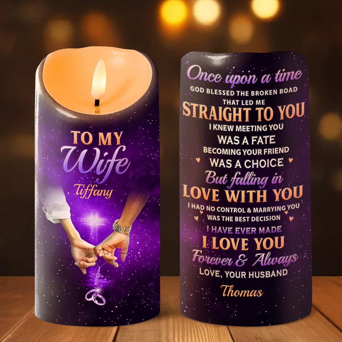 God Blessed The Broken Road - Personalized Flameless LED Candle