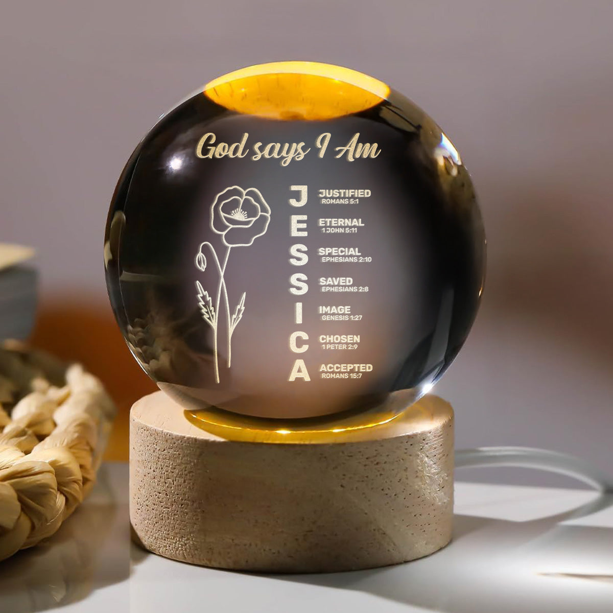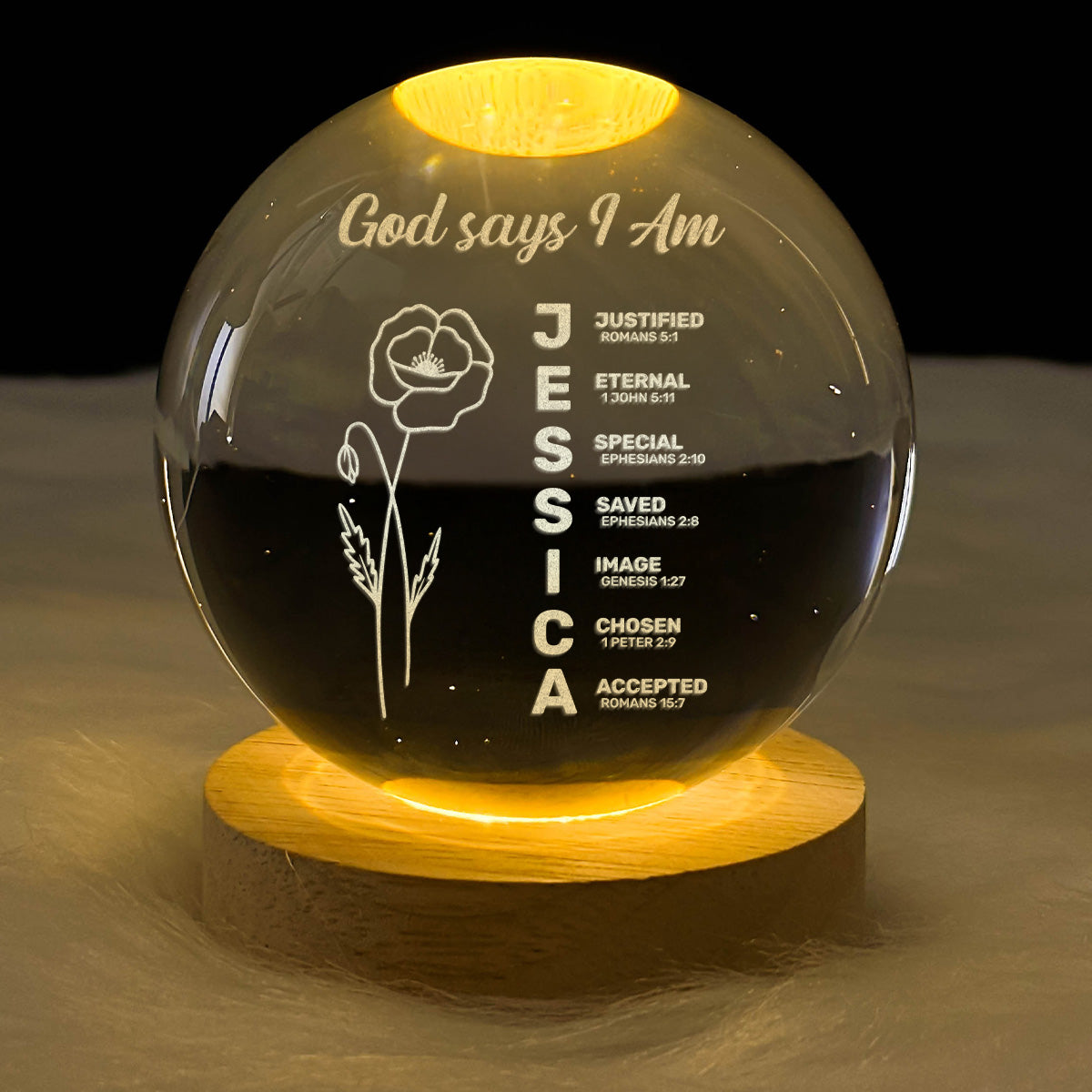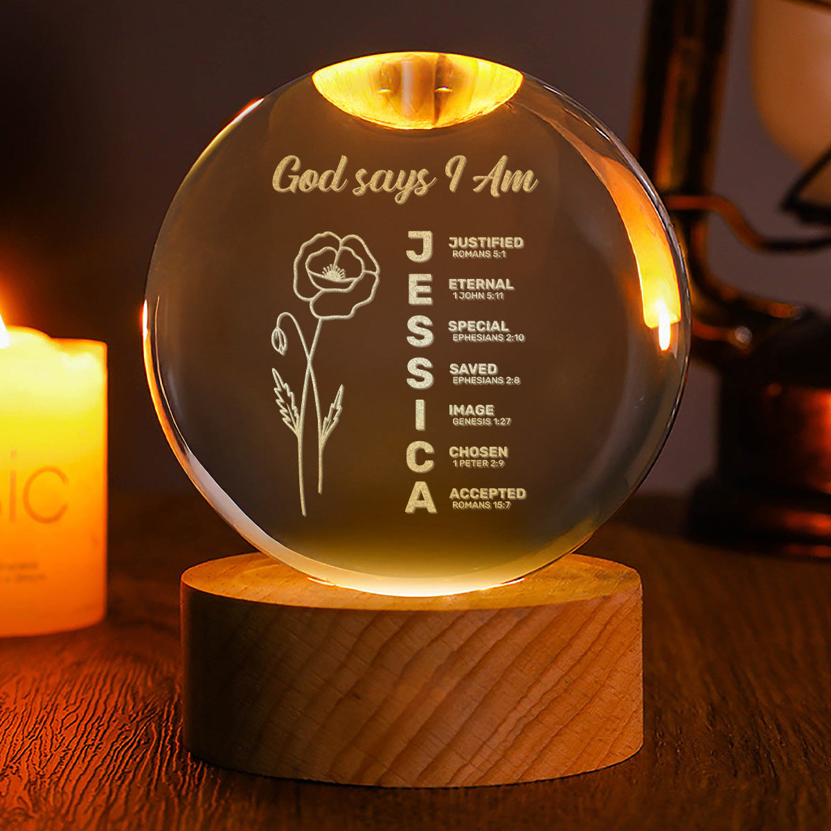 God Says I Am - Personalized Wooden Base Crystal Lamp